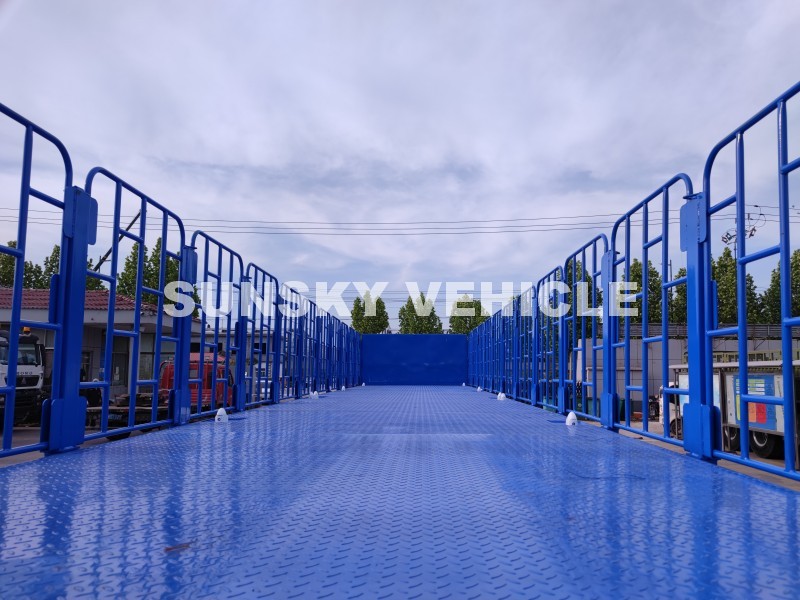 Насыпные грузы: Боковые решетки высотой 1200 мм обеспечивают надежную фиксацию таких товаров, как зерно, цемент или горнодобывающие материалы, значительно снижая вероятность просыпания и потерь.Контейнерные перевозки: Встроенные замки для контейнеров стратегически расположены для безопасной фиксации контейнеров размером 1x20 футов, 1x40 футов или 2x20 футов, что позволяет оперативно переключаться между операциями.