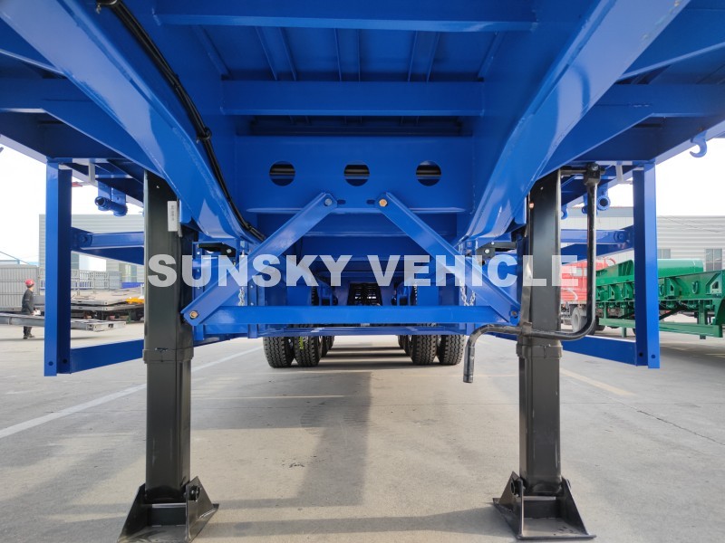 Оси: 3 оси, грузоподъемность 16 тонн, марка FUWA — всемирно признанный бренд в сфере тяжелых перевозок.Шасси: Оснащено 28-тонным шасси марки JOST с двухскоростным ручным управлением для устойчивой стоянки и легкого снятия.