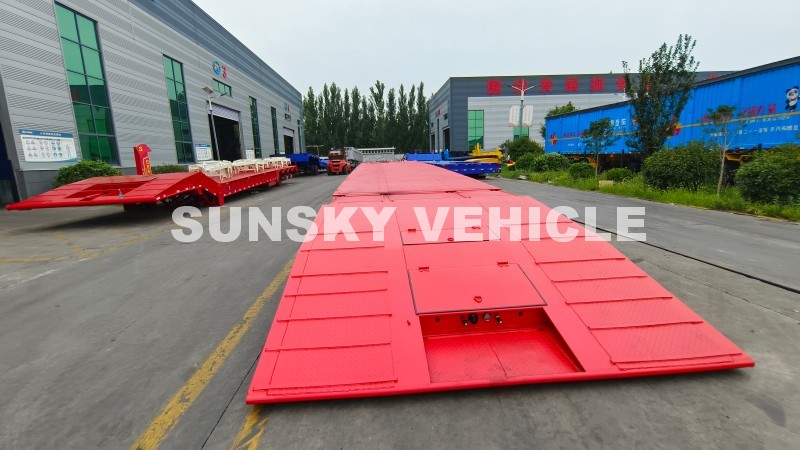 Устали от медленных и опасных процедур погрузки сзади? Наш 6-осный низкорамный прицеп оснащен интегрированной гидравлической системой «гусиной шеи» с собственным двигателем и насосом. Этот передовой механизм позволяет одному оператору быстро отсоединить «гусиную шею», превратив платформу прицепа в пандус на уровне земли. Это устраняет необходимость в громоздких внешних погрузочных пандусах, значительно ускоряя рабочий процесс и, что более важно, минимизируя профессиональные риски, связанные с погрузкой тяжелой техники на наклонных поверхностях. Загружайте свою технику спереди, закрепляйте ее и отправляйте в путь за считанные минуты, а не часы.