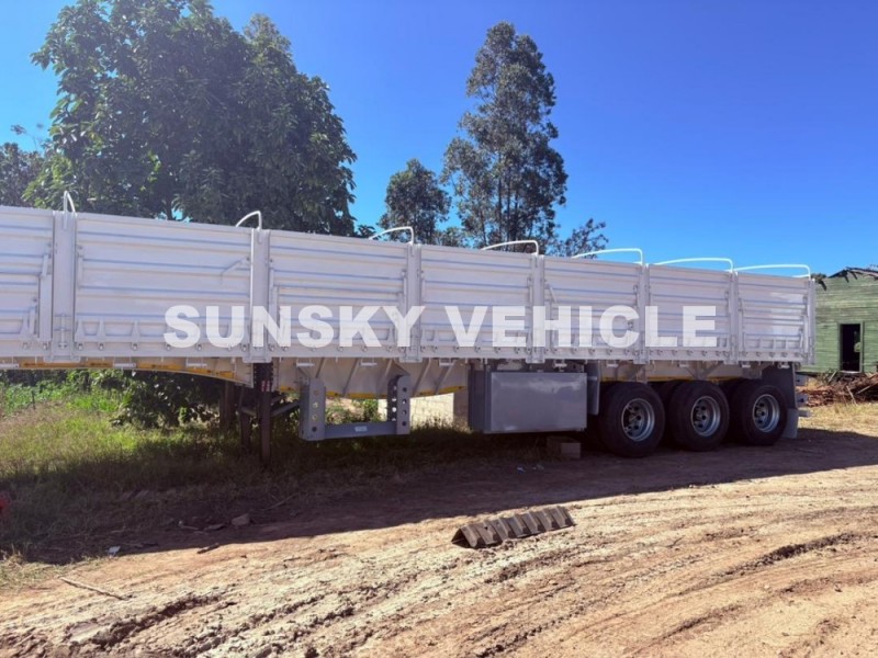 Our dropside semitrailer is built to the highest standards. The mainframe is made with heavy-duty, high-tensile Q345B low-carbon alloy steel for exceptional durability. The chassis is welded by an automotive arc-submerge process, and the frame is shot peened to improve anti-distortion, anti-seismic, and anti-turbulence capabilities. This ensures the trailer maintains superior stability and safety, even on Zimbabwe's diverse road conditions. The vehicle is equipped with three SUNSKY 13-ton axles and an 8-blade mechanical suspension system, which further ensures the stable and safe transport of goods, earning high praise from our client.